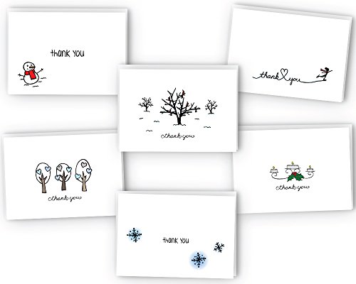 Winter Thank You Note Cards - 24 Cards with Envelopes - Eco 100% Recycled