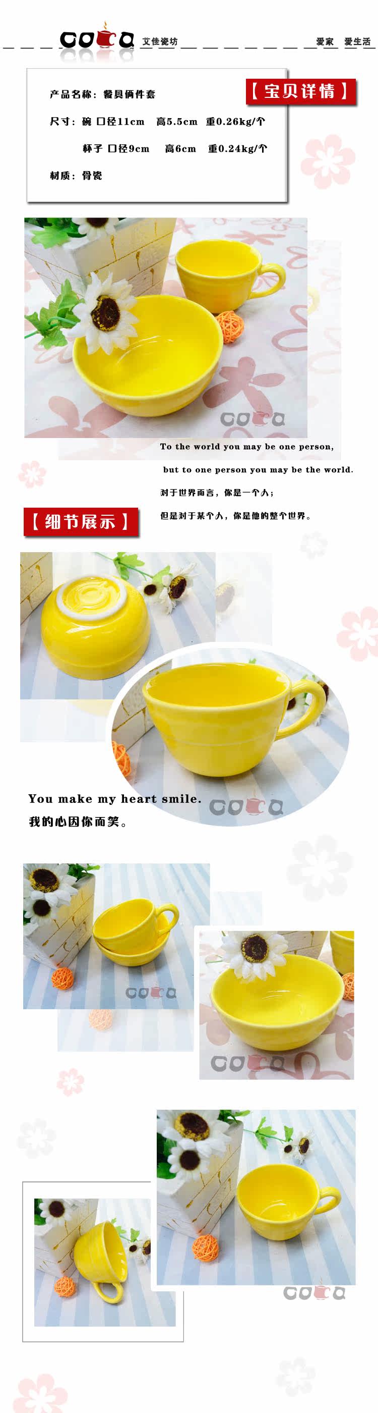 杯碗两件套杯子加碗真 陶瓷 景德镇制 出口黄色釉