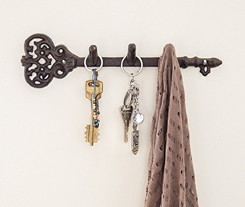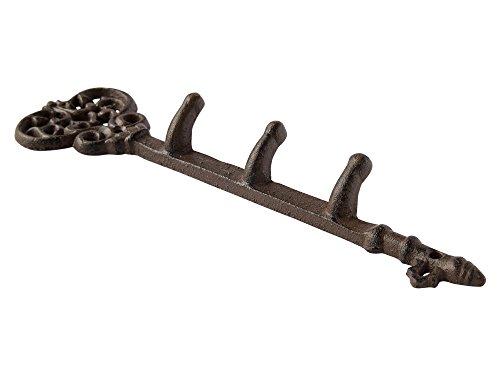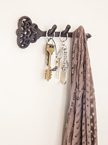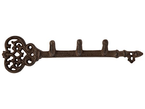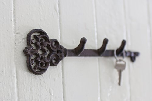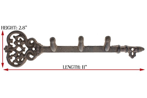 Decorative Wall Mounted Key Holder | Vintage Key With 3 Hooks | Wall Mounted | Rustic Cast Iron | 11.6 x 3”- With Screws And Anchors By Comfify