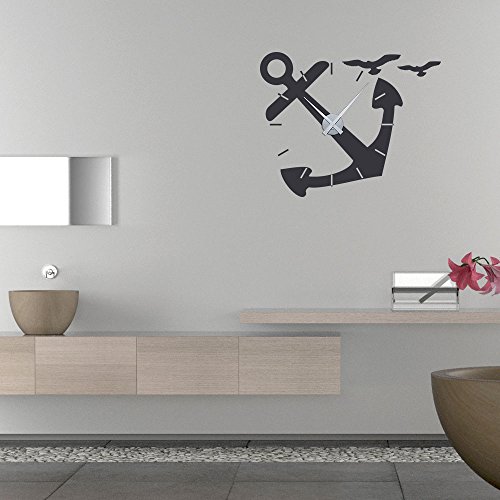 -. Title : Graz Design Wanduhr aus Sticker Motiv "Anker und Möwen