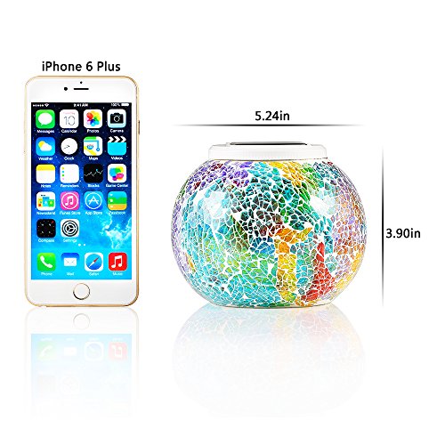 5.24*5.24*3.90 inches Solar Powered Glass Ball LED Lights: covered with colorful mosaic glasses, creates a romantic and lovely atmosphere.