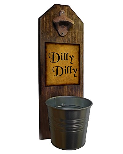 -. Brand : CherryPic Junction -. IsAdultProduct : 0 -. ProductGroup : Guild Product -. ProductTypeName : GUILD_HOME -. Title : Dilly Dilly Bottle Opener and Cap Catcher. Handmade by a Vet. Made of solid pine, rustic cast iron bottle opener and sturdy mini galvanized bucket. Great Gift! (for your beer!)