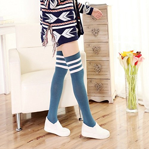 -. Binding : Apparel -. Brand : Leotruny -. Department : womens -. Feature : Fit women shoe size 6-10 (sock size 9-12) / Length : Approximately 68cm / 26.5 Inch , Circumference : Approximately 16~40cm / 6.3~15.7 Inch / Excellent stretch, Spandex for better fit / May not come up as far up on large legs / Made in Korea -. ProductGroup : Apparel -. ProductTypeName : SOCKSHOSIERY -. Size : One Size -. Title : Leotruny Women's Triple Stripes Over the Knee High Socks