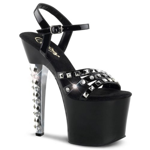 Product DescriptionHeel Height: Approx. 7' Tall. Ankle strap high heels featuring spikes and stones adorning heel.0