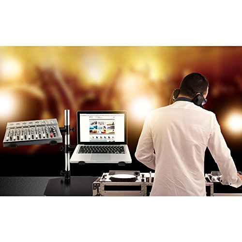 Studio : DJ Tech Pro USA, LLC Publisher : DJ Tech Pro USA, LLC Binding : Electronics Product Description Reach new levels in your music performance, and gain convenient access to your gear, with the Pyle PLPTS45 Dual Device Tabletop Studio Equipment Stand. It's the heavy duty solution to hold all your audio equipment. The dual device mount holder arms are height adjustable and can raise or lower your gear from 3.5" to 15.7". Universal bracket arms are also width adjustable so it can hold devices like laptops, mixers, turntables and more. Enjoy 360 degree full rotation swivel adjustments along with device tilting ability. This heavy-duty tabletop stand provides rugged and reliable performance -- all within arm's reach! Adjust, position and angle your equipment exactly where you need it, and achieve optimum performance with the Pyle PLPTS45 Dual Studio Equipment Stand. 0