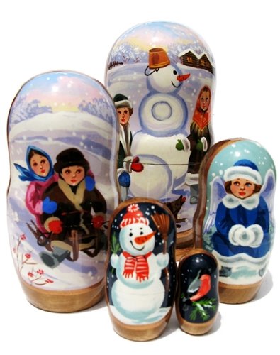 -. Title : Children 5 Piece Russian Nesting Doll Hand Painted Winter Snowman Kids Toy Babushka