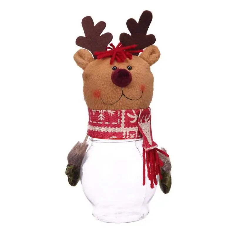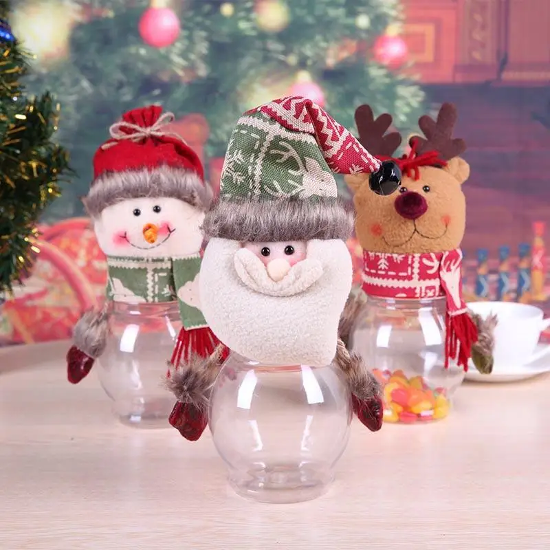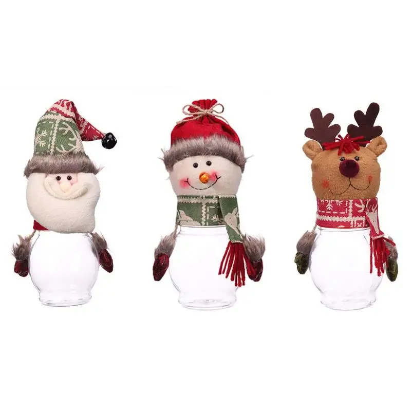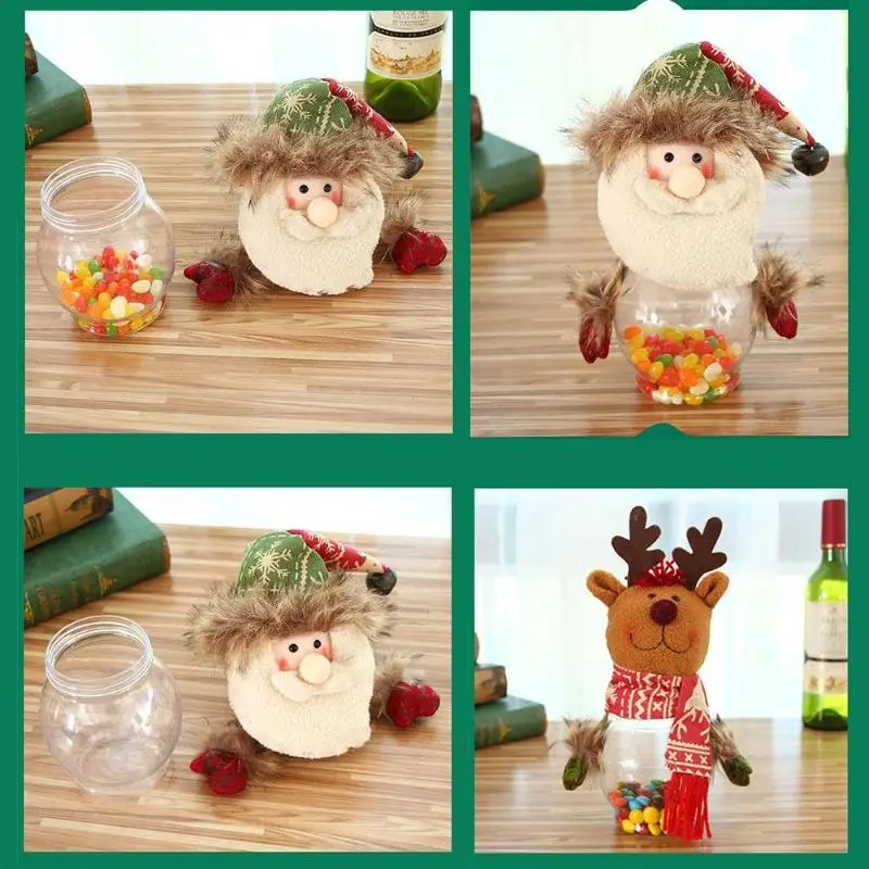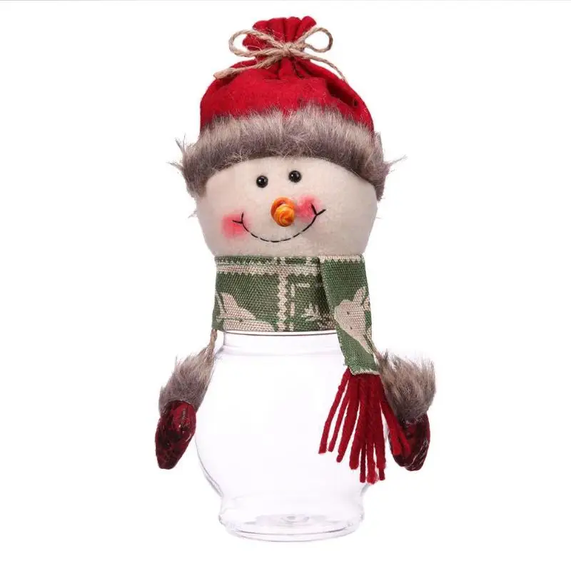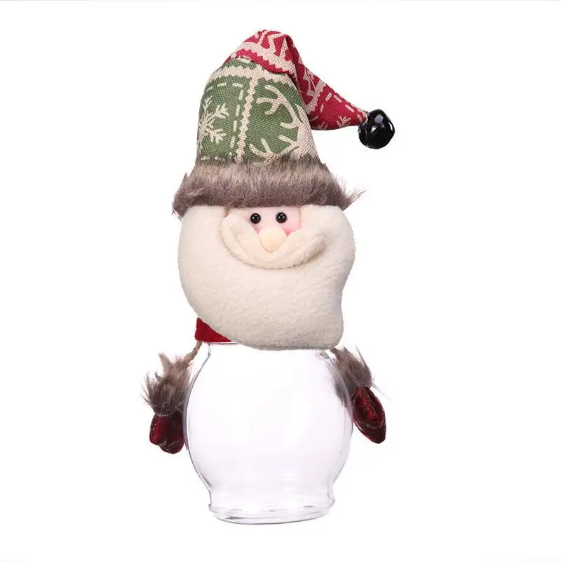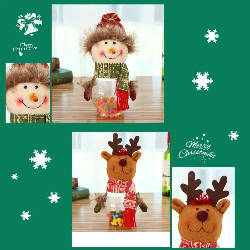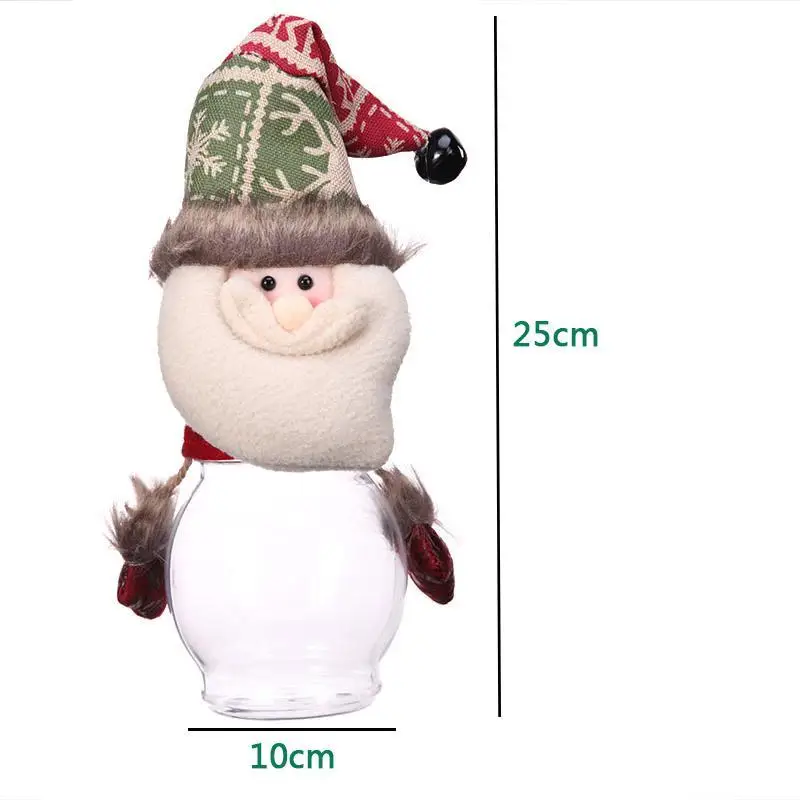 Description: Large transparent candy jar round bottle. Full of festive atmosphere candy cans, can also be used as ornaments. Specifications: Material: Velvet + PVC Style: Santa Claus, Snowman, Elk Size: 25 x 10cm/9.84" x 3.94" Weight: 83g Note: Please allow 1-2cm differs due to manual measurement.