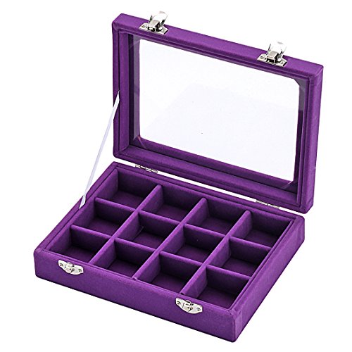 -. Title : Ivosmart 12 Grids Velvet Glass Jewellery Box Ring Earrings Holder Display Organiser Tray Storage Case