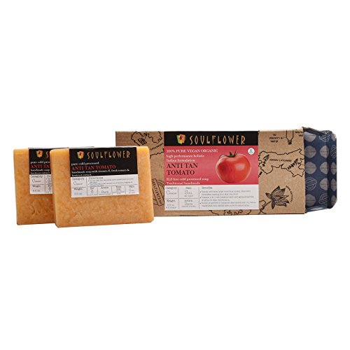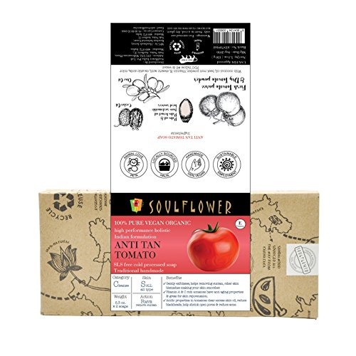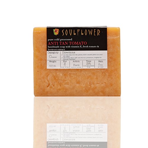 - LIGHTEN SCARS AND SUNTAN; GET FLAWLESS SKIN: Vitamin E, essential fatty acids and nutrients rich Soulflower Anti Tan Tomato Soap lightens suntan, cleanses skin & balances oil secretion, shrinks enlarged pores & soothes skin irritation, making it a good choice for all skin.