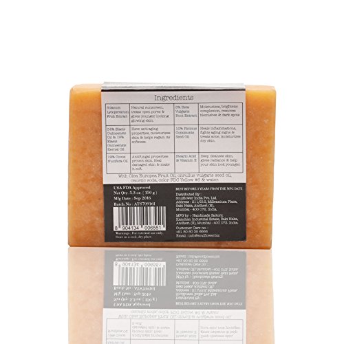 - 100% PURE, VEGAN, ORGANIC, HANDMADE COLD PROCESSED INDIAN FORMULATION: Soulflower Anti Tan Tomato Soap is a pure vegan traditional Indian formulation with tomato fruit extract, watermelon oil, beetroot powder, olive oil, castor oil and coconut oil.