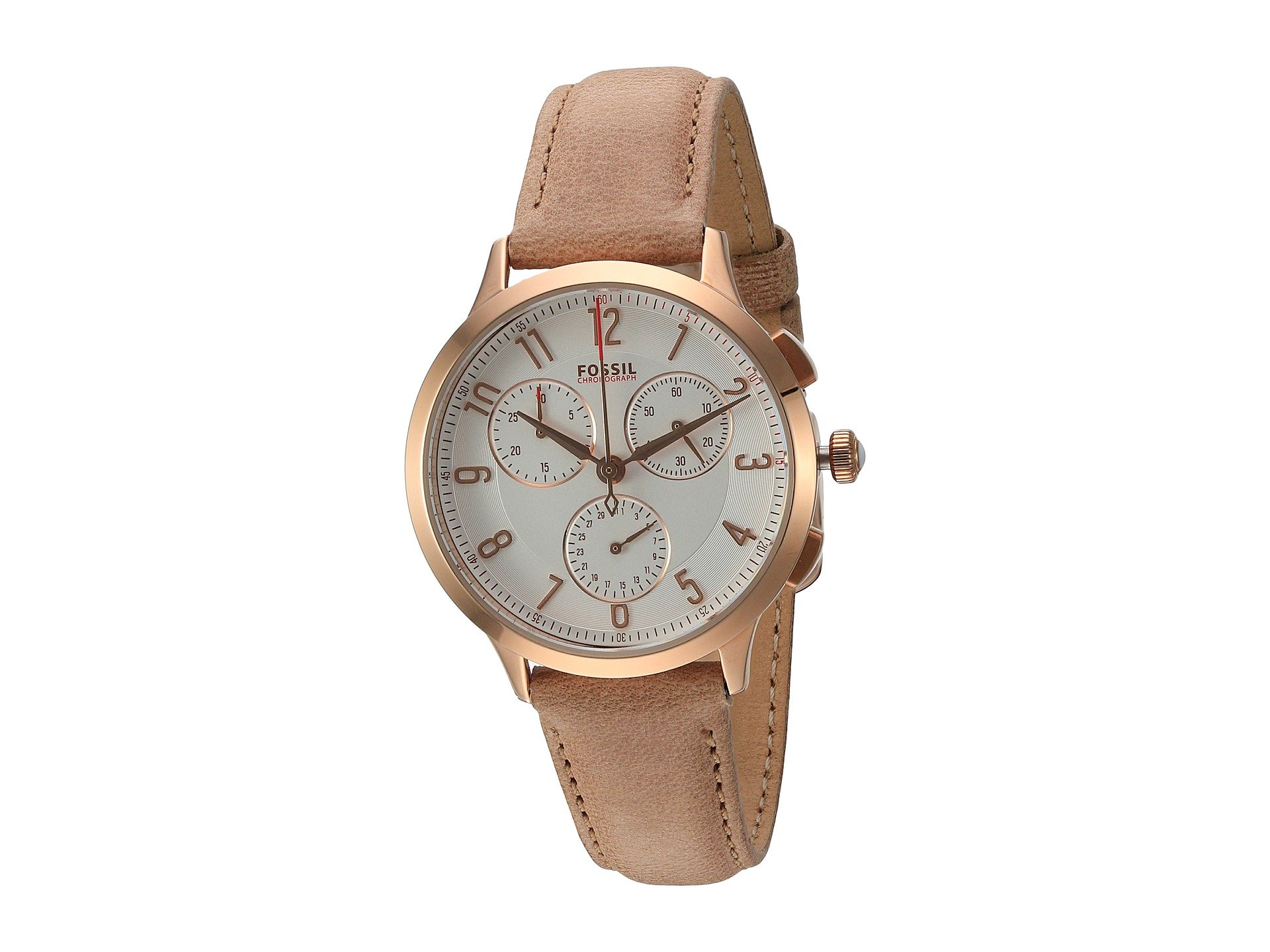 | Product Information SKU: #8697240Finish your look with the precise style of this watch from Fossil?!Stainless steel case.Leather strap with adjustable buckle closure.Round face.Three-hand analog display with quartz movement.White dial features rose gold-tone hands and hour markers, three subdials, minute track, and Fossil detailing. Water resistant 5ATM/50m.Imported.This product may have a manufacturer's warranty. Please visit the manufacturer's website or contact us at warranty@support.zappos.com for full manufacturer warranty details.Measurements: Case Height: 34 mm Case Width: 34 mm Case Depth: 9 mm Band Width: 16 mm Band Circumference/Length: 9 in Weight: 1.4 oz |