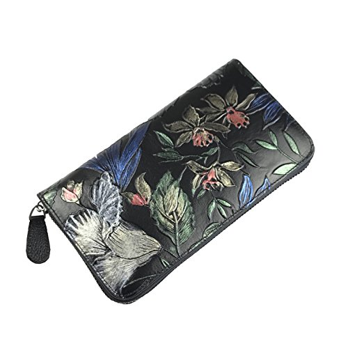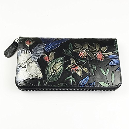 Rhathymia Handmade Vintage Women Floral Genuine Leather Wallets Long Card Purse …