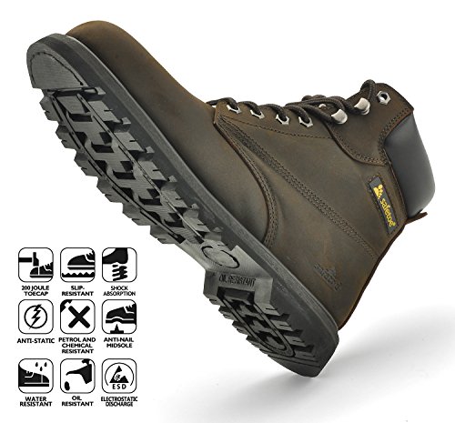 -. Title : SAFETOE Mens Safety Boots Steel Toe Leather Water-Resistant Work Boot Goodyear Welted Rubber Sole
