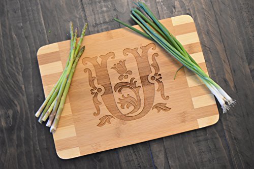 Personalized / Custom Engraved Monogram Bamboo Wood Cutting Board - 13.5"x9.5"x0.66" (U)