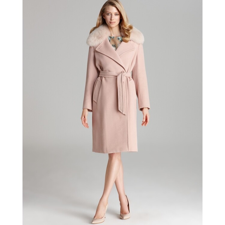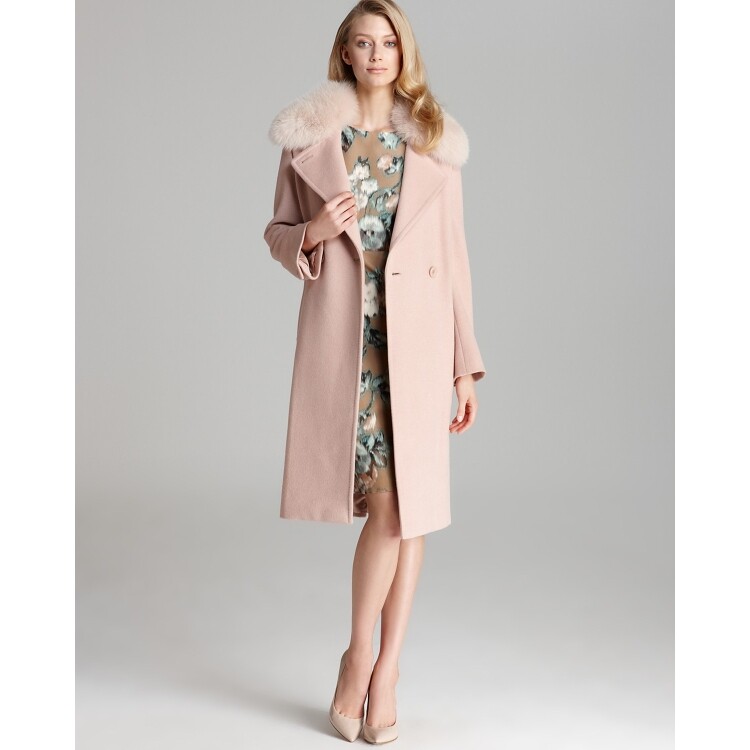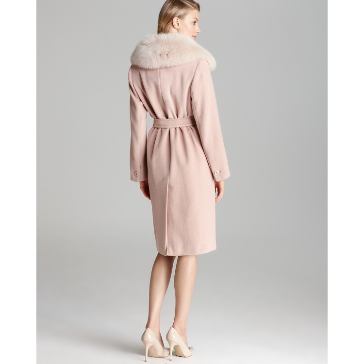 * Wool/silk/angora; lining: viscose; collar: genuine fox fur * Dry clean * Imported * Notch collar with attached fur trim, long sleeves, concealed two-button front closure * Detachable tie belt, side slit pockets, back vent, lined * Please refer to our Classic size chart * Blue fox fur: dyed; origin: imported from Italy * Web ID: 790430 | |