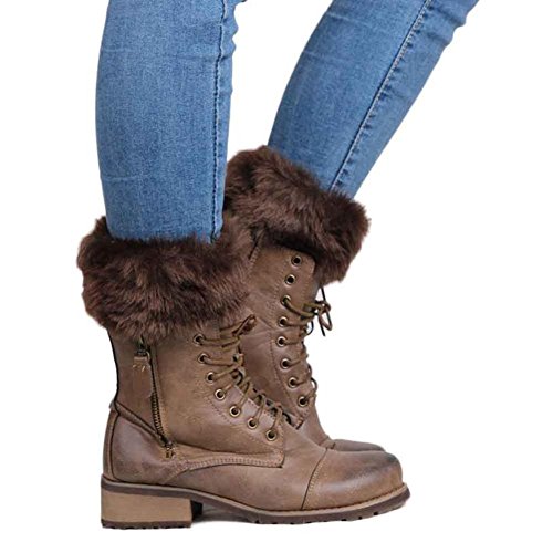 -. Title : RICCOS (TM) Women's Fashion Winter Crochet Warm Knitted Boot Cover Leg Warmer with Fur (Brown)