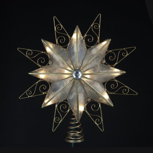 KURT ADLER 10-LIGHT 8-POINT CAPIZ STAR WITH WIRE CHRISTMAS TREETOP, 9-INCH