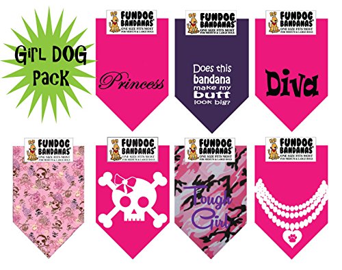 -. Binding : Misc. -. Brand : FunDog Bandanas -. Color : Assorted -. EAN : 0081159546472 -. Feature : Cute! / Affordable! / Great Gifts! / For Medium to Large Dogs -. Label : The Dog Perk Corporation -. Manufacturer : The Dog Perk Corporation -. MPN : Fun-4965 -. PackageQuantity : 7 -. PartNumber : Fun-4965 -. ProductGroup : Pet Products -. ProductTypeName : PET_SUPPLIES -. Publisher : The Dog Perk Corporation -. Size : 22 x 22 x 31 inches -. Studio : The Dog Perk Corporation -. Title : 7 PACK BANDANAS - Girl Dog Pack, One Size Fits Most for Medium to Large Dogs -. UPC : 081159546472
