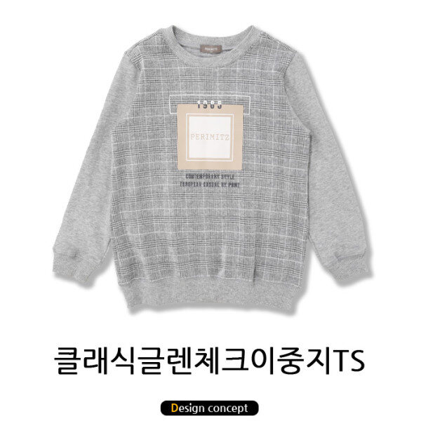 체크 몸판과 미니쮸리 소매에 고급진 맨투맨 티셔츠입니다.몸판에 나염 포인트가 있으며, 코디가 용이한 스타일입니다.