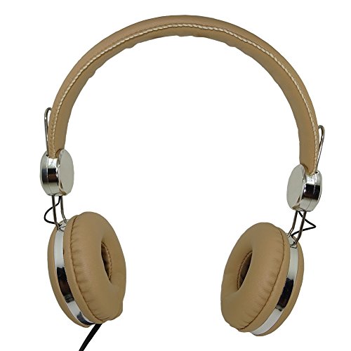 -. Title : On Ear Headphones Leather Surface 5.9 ft Cable Headset Fit Adults and Kids-Khaki/Sliver