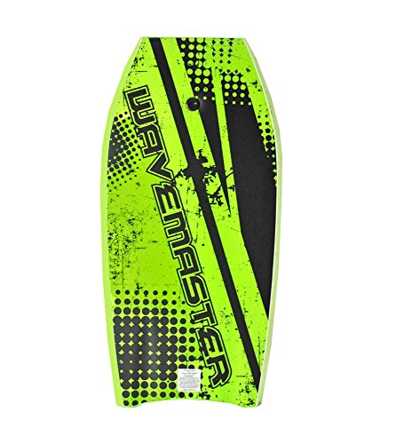 -. Feature : WaveMaster Series is designed for ultimate performance and quality bodyboard for speed, projection and longevity. Its crescent shaped tail bodyboards are mainly used by drop knee riders and prone riders into tube riding with maximum stability / strong, high density core, closed-cell foam made of super strong polymeric chains and it is suitable for both warm and cold water. Polyethylene top skin with unique heat seal bonding to the core preventing water from infiltrating into the core. ; IXL crosslink deck, polyethylene top skin with unique bonding seal to the core. / Lightweight of 2.6 lbs, impact strength durability, water-resistant and compact feeling ; HDPE (High Density Polyethylene) offers strong bottom skin, stiffness and speed. / Recommended for riders that are 66 - 72 inches and weigh 145 - 180 lbs. ; 60/40 rail configuration: makes tricks easier to pull off ; Grooved slots on the bottom: minimize turbulence and increase board hold to wave. / Built-in padded & adjustable rentention wrist leash to keep board close to body ; Dimensions (inches): 21 Widest Part; 19 Tail Width; 12 Nose Width; 2.5 Thickness