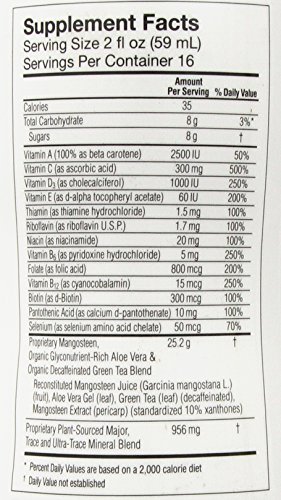 -. Binding : Health and Beauty -. Brand : Vemma Nutrition Company -. Feature : This gives you assurance that its ultra-premium blend of 12 essential vitamins, plant-sourced minerals, whole-fruit mangosteen, organic glyconutrient-rich aloe vera and organic green tea is giving your body the essentials it needs to form a solid nutritional foundation. -. IsAdultProduct : 0 -. Label : Vemma Nutrition Company -. Manufacturer : Vemma Nutrition Company -. ProductGroup : Health and Beauty -. ProductTypeName : HEALTH_PERSONAL_CARE -. Publisher : Vemma Nutrition Company -. Studio : Vemma Nutrition Company -. Title : Vemma Mangosteen Plus with Essential Minerals Two 32 Oz Bottles