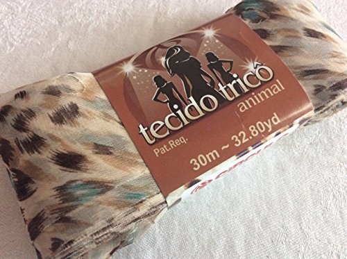 Circulo Tecido Trico Fabric Ruffling Scarf Yarn #2637 Leopard Print with Teal Accents