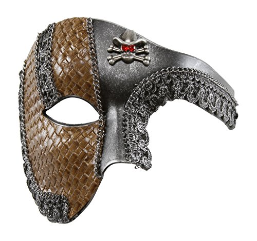 -. Brand : KAYSO -. Color : Gold -. Department : womens -. Feature : Made in USA or Imported / Victorian Steampunk inspired design / Assembled by hand / One size fits most / Worn with satin ribbon -. ProductGroup : Apparel -. ProductTypeName : ADULT_COSTUME -. Size : One Size -. Title : KAYSO INC The Pirate Victorian Steampunk Half Face Masquerade Mask