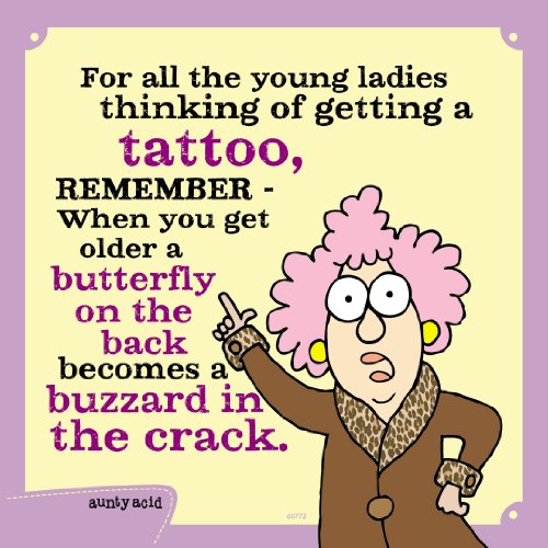 - "For all the young ladies thinking of getting a tattoo, remember, when you get older, a butterfly on the back becomes a buzzard in your crack"