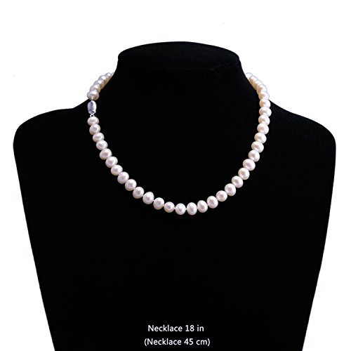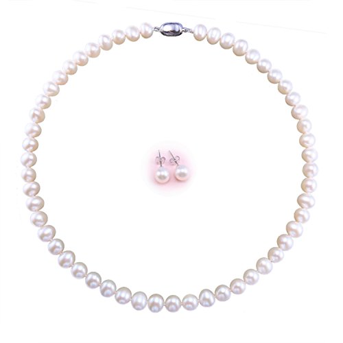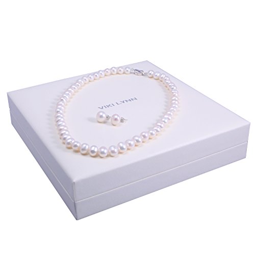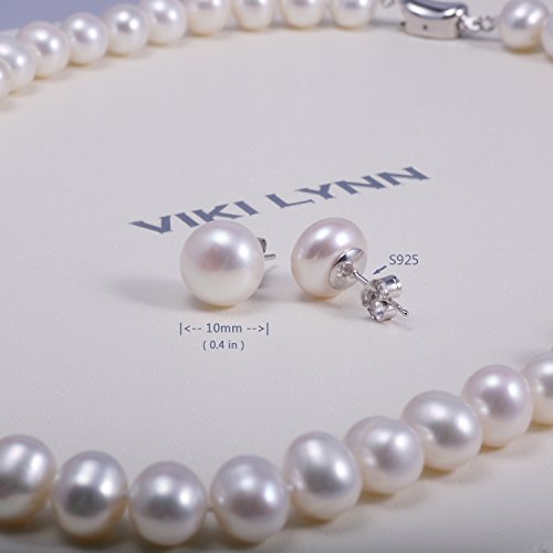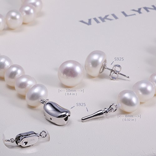 -. Feature : VIKI LYNN AAA 8-8.5mm off-round natural freshwater cultured pearl necklace, 10-10.5mm freshwater cultured pearl stud earrings jewelry set with 925 sterling silver 18K gold plated pea clasp, 1.1cm 925 sterling silver post, wrapped in a blue velvet bag with a gift box. As a classic design, this elegant freshwater pearl necklace, earrings are the best gift for Mom. / 925 Sterling silver freshwater cultured pearl necklace makes women and ladies very eye-catching, glamorous at party or any occasion, every chic and elegant women deserves this elegant freshwater pearl necklace. / CARE FOR YOUR FRESHWATER PEARL NECKLACE & STUD EARRINGS: Pearls are soft and delicate, but when cared for with common sense, they will maintain their luster for centuries. The pearls should not come in contact with cosmetics, hairspray, perfume, chlorinated water, or other harsh chemicals, should be stored in a cloth pouch or jewelry bag, separated from other jewelry. Periodically, pearl strands should be restrung since the silk thread used to tie the pearls together breaks down over time. / This fabulous freshwater pearl necklace, earrings could be considered as the best gift ideas-birthday gifts for women, gifts for mom, anniversary gifts for her, Mother Day gifts, wedding anniversary gifts and Valentines Day gifts. LIFETIME WARRANTY & 30 DAYS MONEY BACK, Purchase from VIKI LYNN, Satisfaction guaranteed by VIKI LYNN.