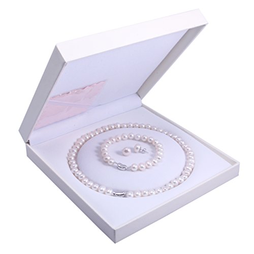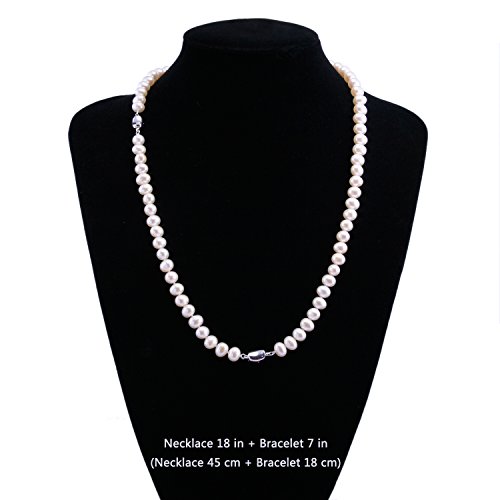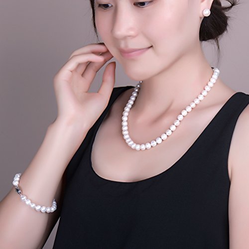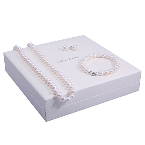 -. Title : VIKI LYNN Pearl Necklace Set-8-8.5mm Freshwater Cultured Pearl Necklace 18", Bracelet 7.5" & 10-10.5mm Freshwater Cultured Pearl Stud Earrings Jewelry Set, AAA Quality, Mother Day Gifts, Valentine Day Gifts