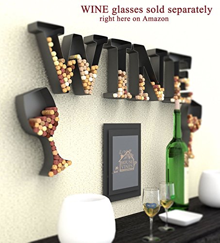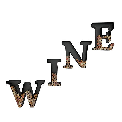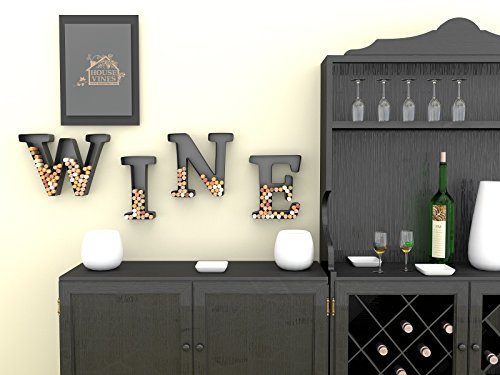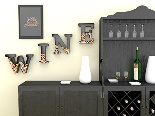 WINE LETTER CORK HOLDER ART WALL DÉCOR - METAL - ALL 4 LETTERS W I N E - INCLUDES SAMPLE SILICONE WINE GLASS CHARM - BY HOUSEVINES