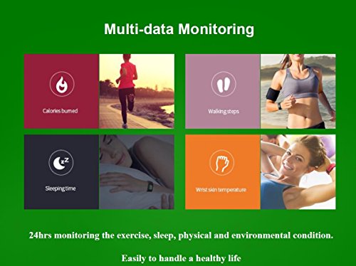 Smart Fitness Wristband Bracelet as Sport Activity Tracker : Recording sports data automatically all day around. Love sports, Love yourself. Record steps, mileage, calorie burnt. Vibration reminds when goal achieved.Connect with smart phone by Bluetooth,compatible for Android system ( Android 4.4 or above ) and iOS system ( iOS 7.0 or above).