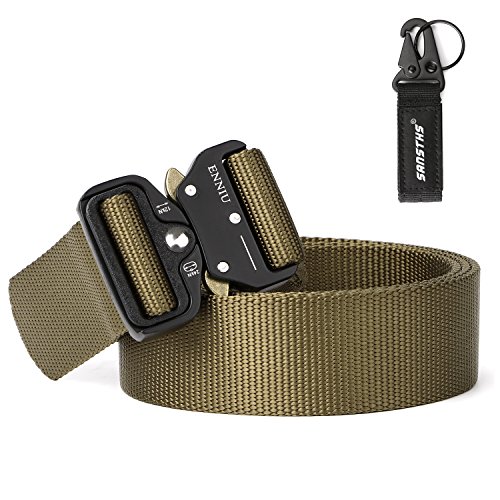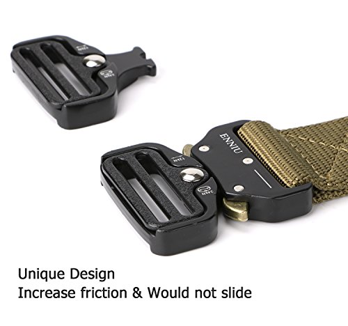 [High Quality Material] The solid buckle of this tactical belt made of Zinc Alloy material which is durable, scratch resistant and anti-rust for sports and outing. The 2.7mm thick webbing made from environmental friendly nylon that is soft, breathable and comfortable for daily use.