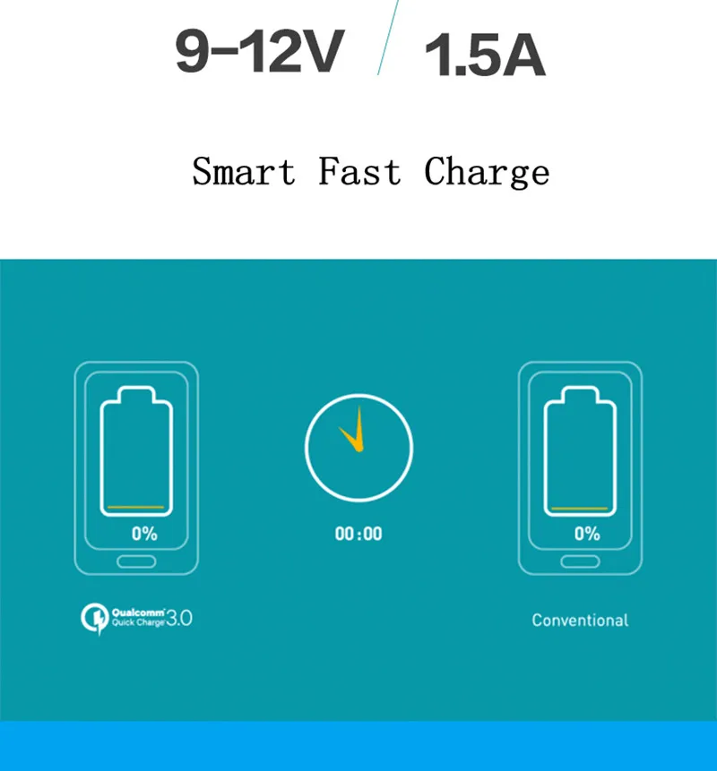 Support Quick Charge Technology:Qualcomm Quick Charge 3.0,Qualcomm Quick Charge 2.0
