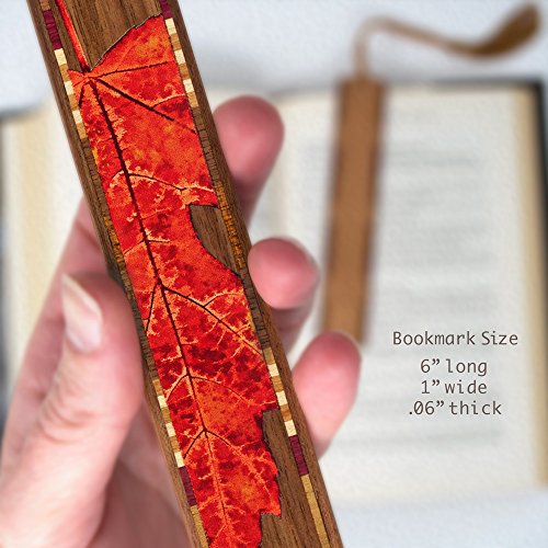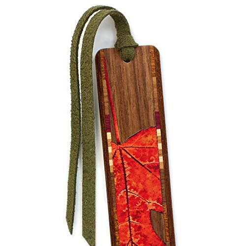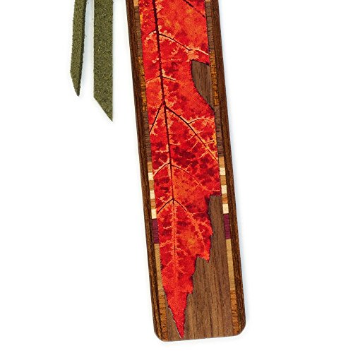 Red Maple Leaf Wooden Bookmark with Green Suede Tassel