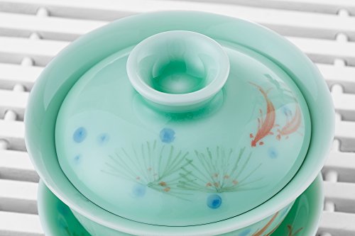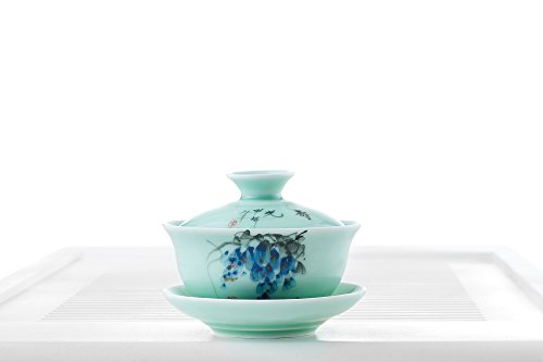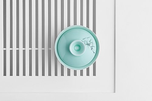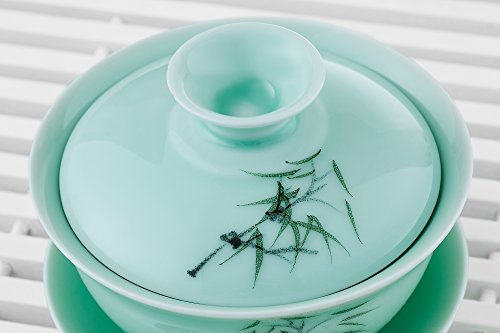 -. Feature : Celadon gaiwan with hand painted bamboo from Longquan province. Includes a mug, a lid and a saucer. / Porcelain absorbs the heat and cools the tea while steeping. Ideal for white, green, oolong teas. / You can drink your tea directly from the gaiwan or pour the liquor into a jug, a cup, a pitcher. / Clean your hand-painted gaiwan with a soft sponge or cloth. For tough spots use mild liquid detergent. / The gaiwan holds a volume of about 5 fl oz / 150 ml. The empty item weighs approx 9.8 oz / 280 g