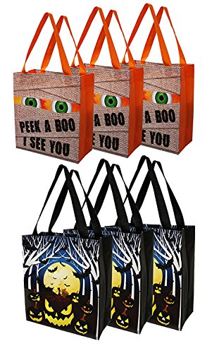 Earthwise Halloween Trick or Treat Bags Reusable Shopping Totes Goodie Bags Party Favor ( 6 Pack )