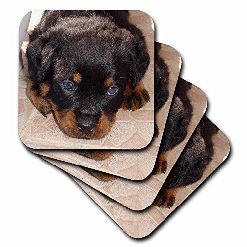 3dRose Dog Rottweiler Puppy - Ceramic Tile Coasters, set of 4 (cst_17676_3)