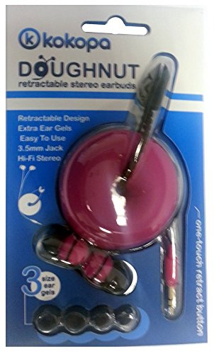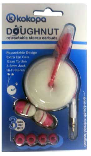 -. Title : Champion-DNT-PINK 3.5mm Jack Kokopa Retractable Doughnut Stereo Earbuds with One Touch Retraction