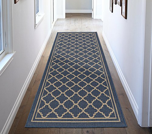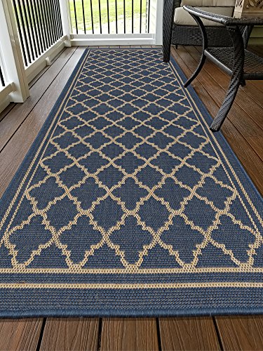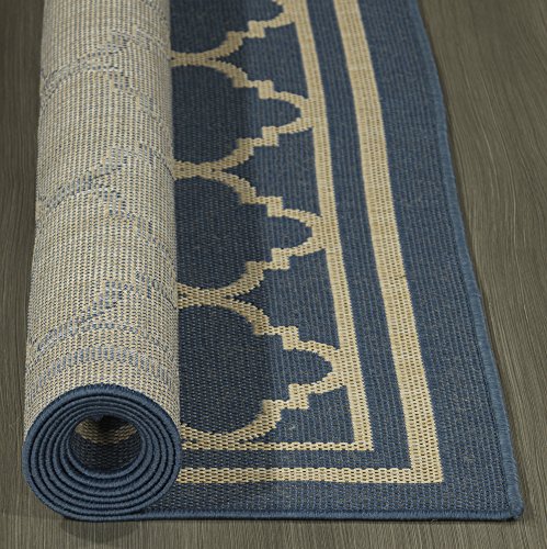 Studio : Ottomanson Publisher : Ottomanson Binding : Kitchen Product Description Ottomanson Jardin Collection is inspired by the charm of natural sisal rugs and designed with a rich texture to enhance any space effortlessly. This elegant 5'3" x 7'3" rug is crafted using a power-loomed construction and features a Natural Moroccan Trellis Design with fine cream lines and borders on the beautiful blue base. The flat weave pile allows for seamless placement underneath furniture and in entryways while its fringeless border offers a clean look and feel. This rug is also ideal for families with pets and kids. Perfect for interior or exterior usage in any deck, backyard, porch, patio, terrace, kitchen, living room, kids room, summer house, poolside, picnic or camping areas, this rug will instantly turn your outdoor and indoor area into a resort-style entertaining space. More than a decorative enhancement, this rug is both mildew and mold-resistant to ensure carefree maintenance. Treat yourself to this versatile rug from Ottomanson Jardin Collection available in a rich variety of colors and sizes to fit your personal style and add a fantastic casual sophistication and visual inspiration to your space. 0