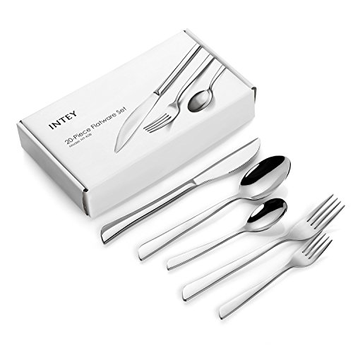 INTEY Stainless Steel Flatware Silverware Set, 20-Piece Mirror Polished Utensils for Home, Kitchen, Hotel or Restaurant, Eating Utensils for 4 People
