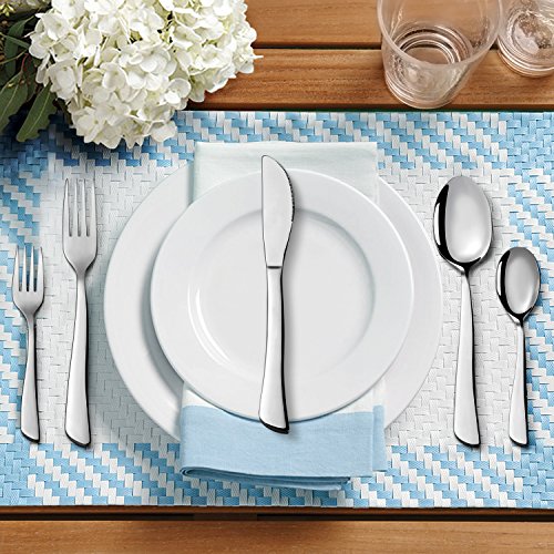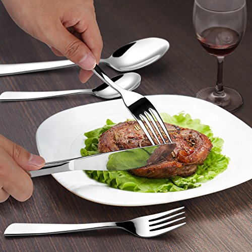 - 【Advanced Design】 Designed from Italy, this modern flatware sets is patent. Its streamline design provides you with good and comfortable grip. Besides, elegant ergonomic design makes the flatware set for 4 great for everyday and formal use.