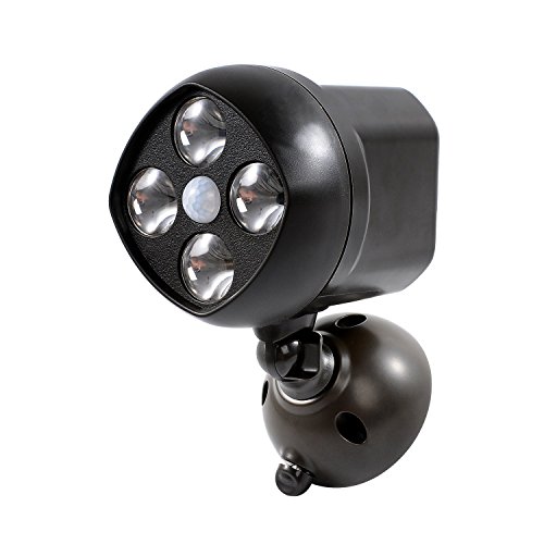 LEDemain Super Bright Spotlight IR Motion Sensor Security Light Battery Powered 8W 4 LEDs Waterproof Wireless Wall Light for Outdoor / Indoor(600-lumen)