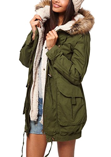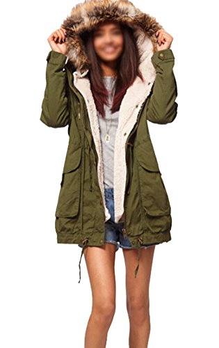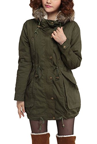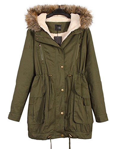 -. Title : SMITHROAD Damen Winter Parka Jacke mit Kapuze und Abnehmbarem Futter Trenchcoat Mantel Oberschenkel-lang Armee Grün