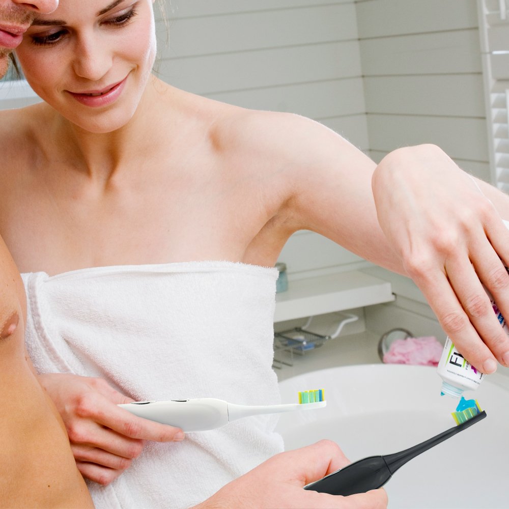 Before turning on Sonic electric toothbrush to avoid toothpaste spray.