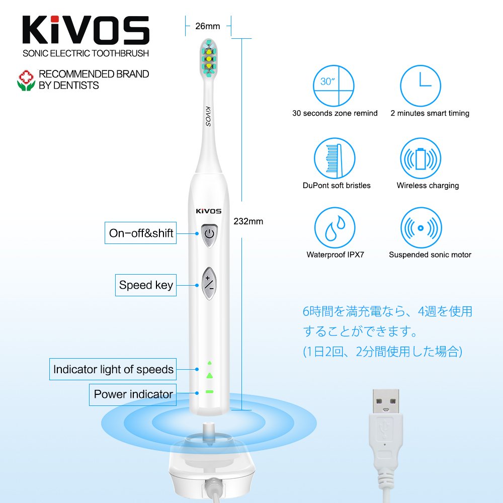 KIVOS ultrasonic vibration electric toothbrush clean teeth, smart whitening, with your healthy smile and confidence, your teeth will brighten up white, your gum health care