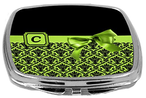 Rikki Knight Letter-C Monogram Damask Bow Design Compact Mirror, Lime Green, 2 Ounce
