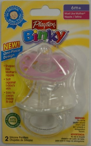 NEW PLAYTEX BINKY 1-PIECE DESIGN SILICONE PACIFIER BPA FREE 6+ MONTHS GIRL COLORS (2 IN PACKAGE)