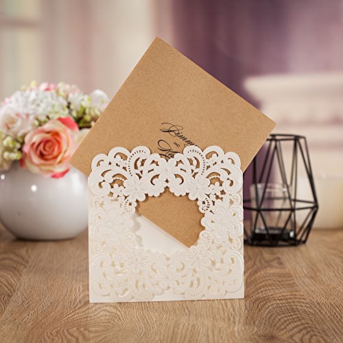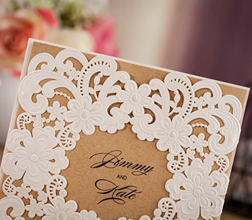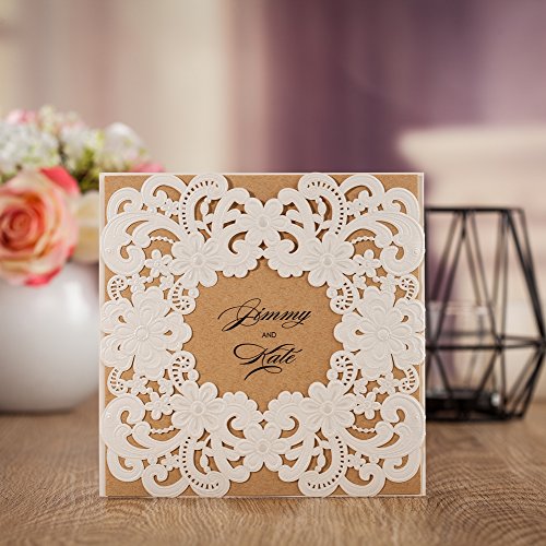 Wishmade 50x Laser Cut Square Invitations Cards Kit For Wedding Party Birthday Occasion AW7016